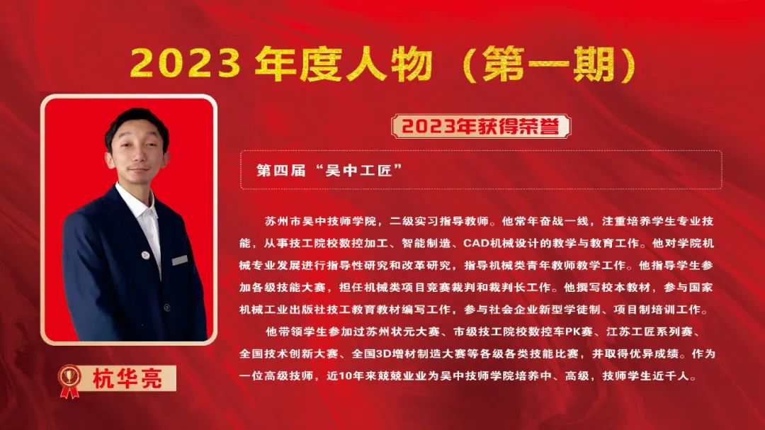 他帶領(lǐng)學(xué)生參加過(guò)蘇州狀元大賽、市級(jí)技工院校數(shù)控車(chē)PK賽、江蘇工匠系列賽、全國(guó)技術(shù)創(chuàng)新大賽、全國(guó)3D增材制造大賽等各級(jí)各類(lèi)技能比賽,并取得優(yōu)異成績(jī)。作為一位高級(jí)技師,近10年來(lái)兢兢業(yè)業(yè)為吳中技師學(xué)院培養(yǎng)中、高級(jí),技師學(xué)生近千人。