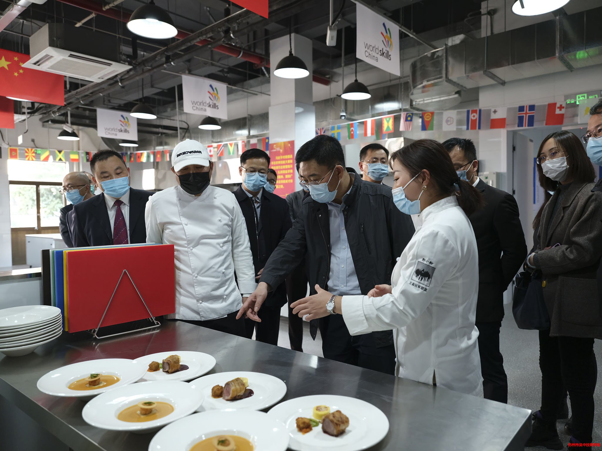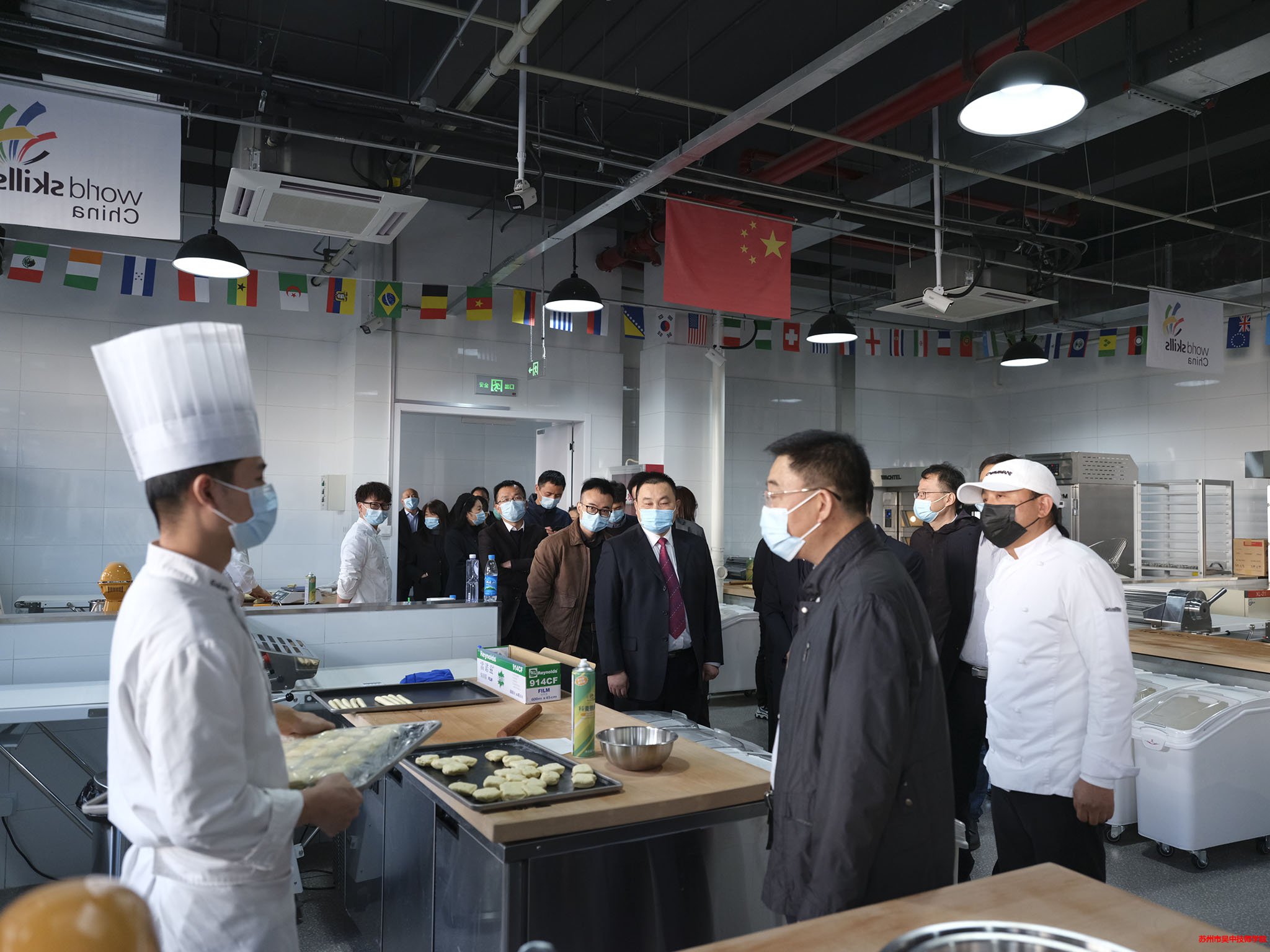 11月11日,市人社局局長朱正,副局長譚國明、田嘉勇等領導蒞臨我院,現(xiàn)場調(diào)研第46屆世界技能大賽中國集訓基地,看望慰問烘焙和西式烹飪項目世賽國家隊選手。區(qū)人社局局長徐晨陽、副局長馮儒生以及學院院長戴鈞、專家組組長王森等陪同調(diào)研。