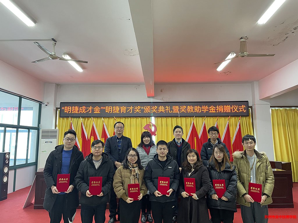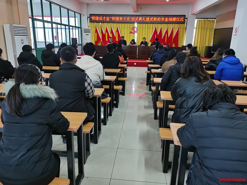 為進(jìn)一步弘揚(yáng)尊師重教傳統(tǒng)美德,激勵學(xué)院教育工作者愛崗敬業(yè),鼓勵學(xué)生奮發(fā)向上,刻苦學(xué)習(xí),技能上全面發(fā)展,深化學(xué)院與企業(yè)交流合作。在蘇州明捷精密機(jī)械有限公司的大力支持下,12月20日上午,“明捷成才金,明捷育才獎”頒獎典禮暨獎教助學(xué)金捐贈儀式在我院行政樓三樓多功能廳隆重舉行。